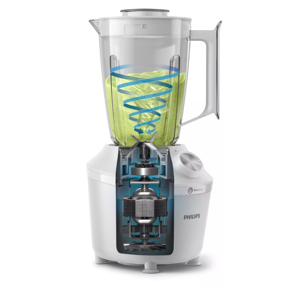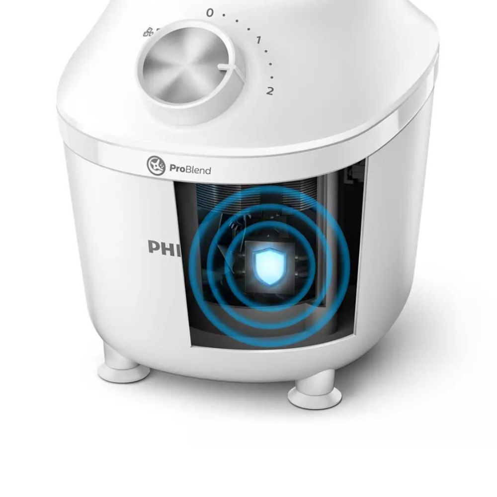 يجمع نظام ProBlend الفريد 3 تقنيات، وهو مصمم خصيصًا لضمان قوام سلس بدون كتل في 45 ثانية فقط*. يشغّل المحرك بقوة 600 واط مسار الخلط، لتوزيع كل المكونات بطريقة متساوية، فيما تتميّز الشفرة بتصميم مبتكر لزيادة مساحة القص إلى أقصى حد. أخيرًا وليس آخرًا، تم تصميم الدورق مع أضلع فريدة لتوجيه المكونات باستمرار نحو مسار الخلط.