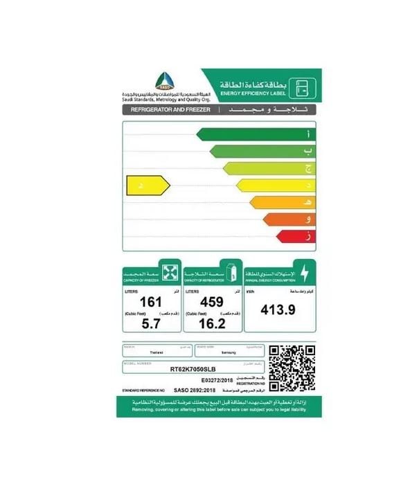* تظل درجة الحرارة داخل مقصورتي الثلاجة أقل من 15 درجة مئوية باستهلاك قدر قليل من الطاقة الكهربائية